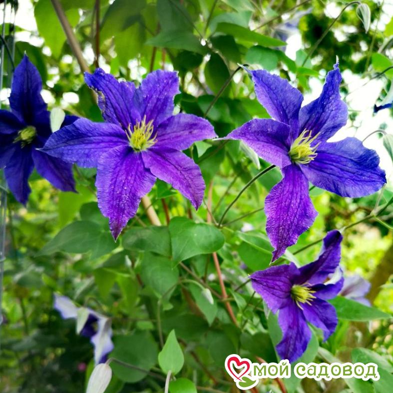 Высота среднерослой вьющейся лианы составляет около 3 м. Листва на побегах тройчатая и простая, окрашенная в зеленый цвет. Цветки полумахровые, с сиреневыми или темно-фиолетовыми лепестками. В полном роспуске диаметр цветка равен 20 см. Примечательно, что первая волна цветения (август-сентябрь), происходит на побегах текущего года. Вторая волна – в мае-июне. Сначала цветки образуются простые, а затем полумахровые.