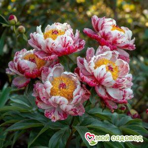 Описание и особенности сорта Цветок Скарлет Хевен отличается от обычного пиона более плоской формой, меньшим количеством лепестков в бутоне. Главным его украшением является пышная желтая середина, состоящая из множества тычинок. Золотое свечение в окружении алых атласных лепестков на фоне зеленого куста с резной листвой создает неизгладимое впечатление. Английское название Алые небеса вполне соответствует его виду. Добавляет прелести цветку необычно нежный аромат. Куст пиона Скарлет Хевен вырастает до 70 см высоты, а диаметр достигает около метра. Стебли твердые, легко удерживают вес цветов и листьев. Растение сохраняет декоративность весь летний сезон благодаря пышной глянцевой листве. Корни расположены близко к поверхности почвы, что вызывает их одревеснение со временем. Цветет с июня по июль в течение 3 недель. Морозостойкость -27 градусов. Предпочтительные зоны выращивания – западная и центральная Россия. При посадке в северных регионах корневая система требуют зимнего укрытия. Преимущество сорта пиона Скарлет Хевен Длительное цветение в июне. Украшение клумб или газона. Использование для срезки. Декоративность весь летний период. Правила ухода за растением Высаживают пионы на открытых солнечных местах или в полутени вдали от деревьев и высоких кустов. Нужно избегать расположения в низинах и на продуваемых ветром участках. Лучшее время для высаживания в грунт – сентябрь-октябрь, до наступления дождливого периода. Возможна весенняя посадка. При этом следует учитывать, что почки просыпаются в марте, и не задерживать высадку растения. Стать обладателем пиона Скарлет Хевен можно, купив его в нашем интернет магазине. На сайте размещен каталог с описанием растений, имеющихся в наличии и тех, которые нужно предварительно заказать. Рассаду приобретаем в питомниках, которые гарантируют качество товара. Поставляется деленками с 3-5 почками. Доставка осуществляется Почтой России в любой ее регион. Возможна отправка за рубеж с помощью ТК СДЭК.