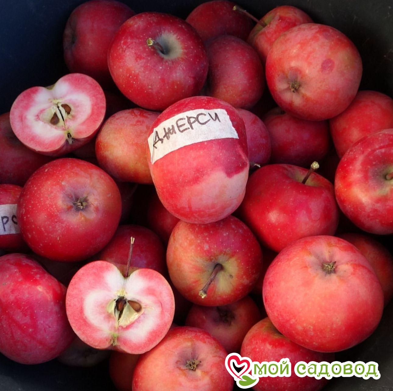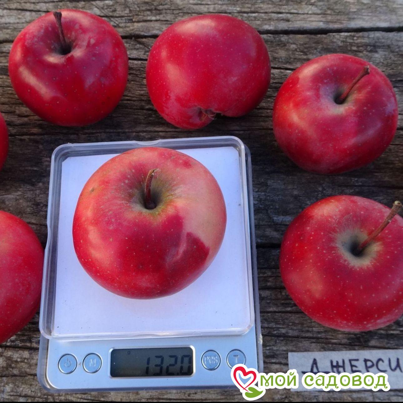 Мякоть малинового цвета, плотная, хрустящая, очень сочная, с неповторимым кисло-сладким вкусом, тонким ароматом, лёгкой приятной терпкостью. Исходя из срока потребления плодов, яблоня Джерси — осенний сорт. Плоды осенних сортов собирают в конце сезона и потребляют, в основном, в осенний период. У части сортов яблоки достигают наилучшего вкуса и аромата (потребительской зрелости) только после непродолжительного хранения. Яблоки осенних сортов в подходящих условиях (например, температура 0…+4°С, влажность 90…95%) могут оставаться свежими несколько месяцев — вплоть до зимы. Урожайность высокая. Морозостойкость и устойчивость к заболеваниям хорошие. Съёмная зрелость плодов наступает в начале октября, а храниться они могут до января. Плодоношение регулярное. Для яблонь сорта Джерси характерны плоды массой до 190 грамм, в среднем около 175 грамм, т.е. яблоки выше среднего размера. В нашем интернет-магазине вы сможете купить Саженцы яблони Так же возможно вас заинтересуют Яблоня Джонатан и Яблоня Старк эрлиест